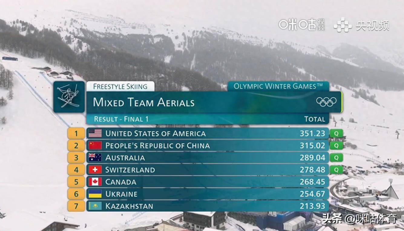 在决赛首轮的较量中,徐梦桃获得81.99分、王心迪获得116.29分、李天马获得116.74分,中国队以总成绩315.02分,排名第二晋级超级决赛轮!与中国队一起晋级超级决赛轮的还有瑞士队、澳大利亚队和美国队!